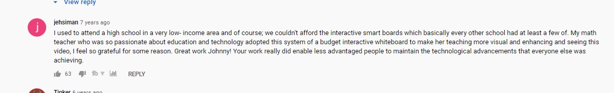 Today based on the same idea I found a video which is like 8 years old relative to the time I am writing this post. Discussess how cost-effective technolgy hacking can really be useful and more than the video, if you can go and check the comments section of the video where only the idea of some research and its use have done an positive impact on people around the globe. I will screen short and paste one such comment which I personnaly liked along with the video link: